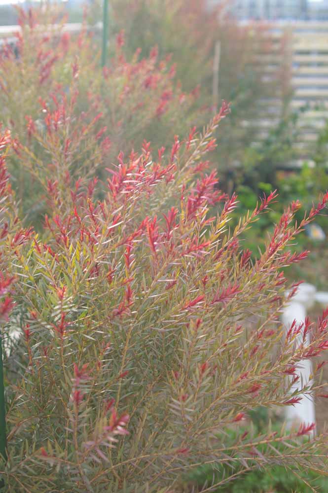 メラレウカを植えています。会社の近くのお花屋さんの壁沿いにこのメラレウカが