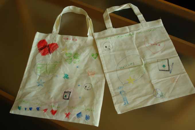 下は同じく造形教室で娘たちが作ったエコバッグです。
